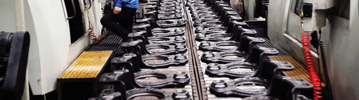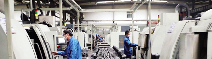陕西德信华臻零部件车间工人正在生产制动底板